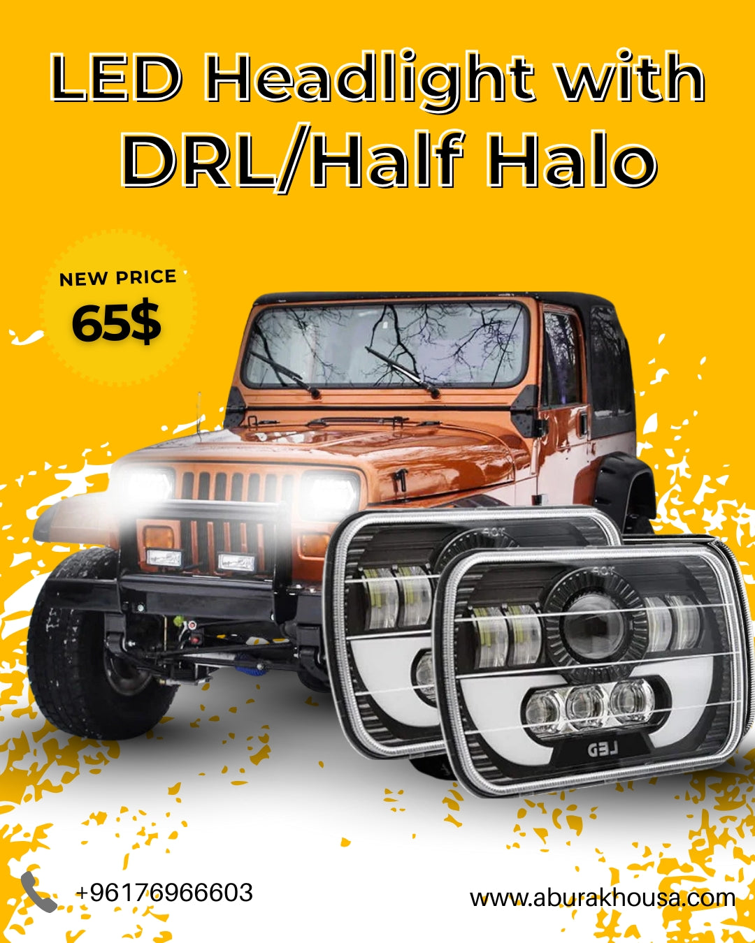 💡 أضئ الطريق بقوة وأناقة – مع LED Headlight with DRL/Half Halo من أبو رخوصة!