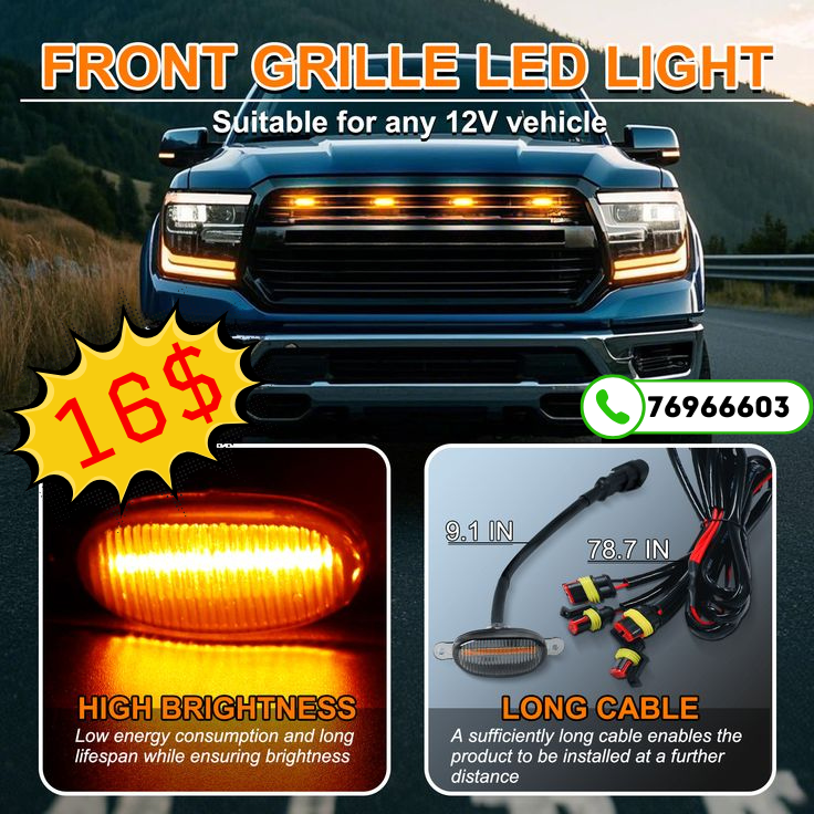 🔥 من عند أبو رخوصة – أضواء LED أمامية أنيقة لشبك السيارة تضيف لمسة جريئة وأمان على الطريق! 💡🚙