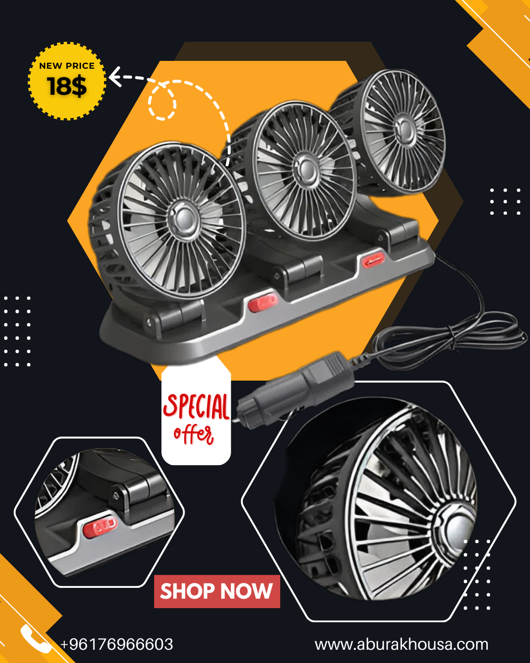 🚗 حافظ على برودة سيارتك مع Triple Headed Fan من أبو رخوصة!